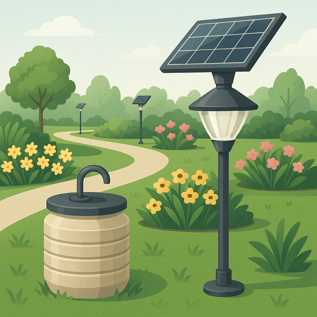 Sulama pompaları ve bahçe aydınlatmaları için güneş enerjisi entegrasyonu.